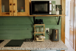 - aneks kuchenny z wyposażeniem (talerze, szklanki, sztućce)